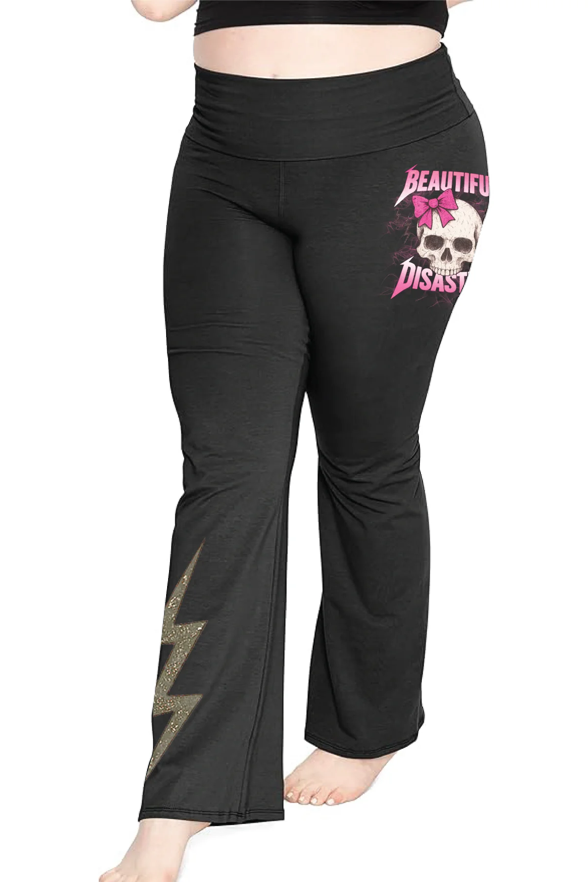 These Skull Candy Yoga Pants are not your average leggings. With a bold glitter lightning bolt down the leg and our fierce Skull Candy logo across the hip, these flares pack serious attitude into every step.